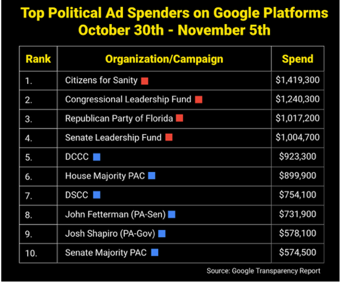 This past year, the dollars were huge. Here’s a snapshot of where political ad dollars went the week – just a week – before election day.
